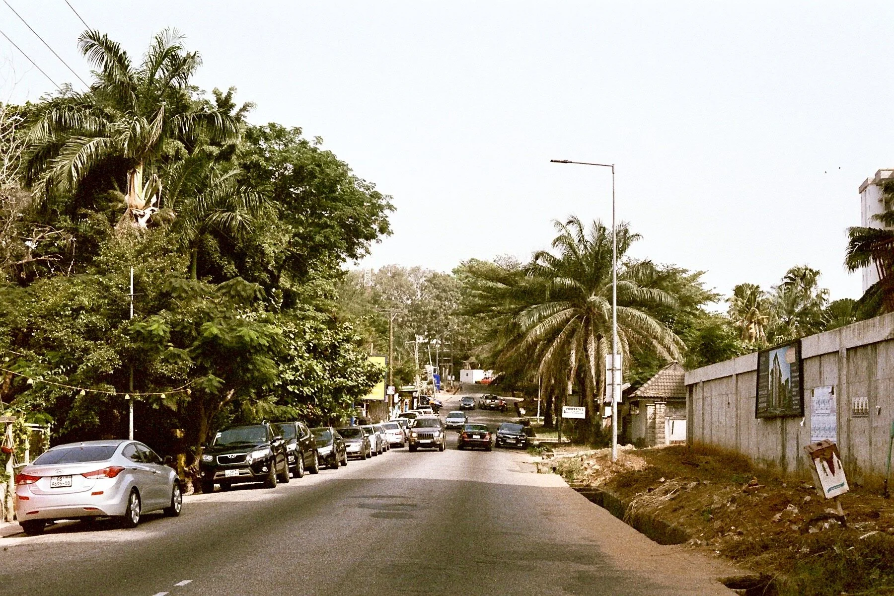Taking this image on film really aided the effort to catch the rusty tones of this brightly lit street in Accra. This is difficult to do with a digital camera, but this was captured exactly the way that I wanted it to be – including every shadow and different tone possible. The image uses particularly warm tones, apt for the temperature in Accra, where it was taken. What would have been a grey city scene is overrun by the green of the tree leaves, the warm brown of the trunks and dry leaves, and the deep rusty colour of the piled laterite beginning to creep into the central third from the final third near the wall. Combined with the open space in the foreground and the patches of sunlight, the image seems to become somewhat inviting and nostalgic.